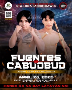 MUAY THAI instructor Alton John Fuentes of Davao City is now ready to face Rex Cabudbud of Nueva Ecija in the “Sta. Lucia Barrio Brawls” on April 25 at the Entertainment Center in Sta. Lucia East Mall. Cainta, Riza