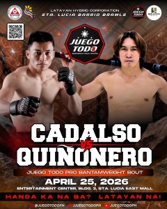 ARMY reservist Dennis ‘The Cannon” Quiñonero of M’lang, North Cotabato will fight Monsod Cadalso of Pampanga in the main event of the “Sta. Lucia Barrio Brawls” on April 25 at the Entertainment Center, Buil