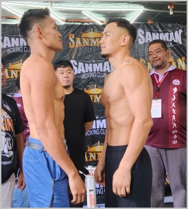 Yesihati Yeerken of China and Rodel Wenceslao of Cebu both weighed in at 152.8 lbs for the main event tomorrow, November 9, at Villa Kristen Resort Hotel in General Santos City. The show is promoted by Jim Claude Man