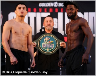 Yesihati Yeerken of China and Rodel Wenceslao of Cebu both weighed in at 152.8 lbs for the main event tomorrow, November 9, at Villa Kristen Resort Hotel in General Santos City. The show is promoted by Jim Claude Man Read Full Story >>>Vergil Ortiz vs. Erickson Lubin: Can Lubin Tip the Ortiz/Ennis Apple Cart? By Chris Carlson, PhilBoxing.com, Sat, 08 Nov 2025