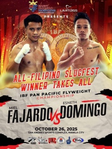 WORLD-rated Esneth “Hard Hitter” Domingo will face former Orient and Pacific Boxing Federation [OPBF] light flyweight champion Miel “Silent Assassin” Fajardo on October 26 at the Thrilla in Manila 2 Countdown at the San Andres Sports Complex in Malate, Manila.