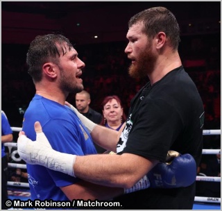 ARSLANBEK MAKHMUDOV DEFEATS DAVE ALLEN AND DEMANDS TO FACE AJ NEXT PhilBoxing.com Sun, 12 Oct 2025 ![]() Dave Allen dared to be great against Arslanbek Makhmudov but ultimately fell short of a fairytale ending in front of an incredible crowd on an unforgettable night at Sheffield's Utilita Arena. Allen was afforded a special atmosphere by the 9000 fans in attendance and he had them in raptures as he delivered an early onslaught against the man mountain Makhmudov. But Makhmudov managed to withstand the heavy pressure from the popular Yorkshire fighter and eventually stun the partisan crowd when he was awarded an unanimous points victory with the judges scoring the bout 115-111, 116-110 and 117-109 all in favour of the 6ft 7in behemoth, despite him having two points deducted for holding. Makhmudov was quick to hail Allen for his heroic display – and immediately turned his attention to calling out two-time Heavyweight World Champion Anthony Joshua to face him next. "Anthony Joshua, where are you? I'm coming for you," said Makhmudov. "I've already spoken with him and he gave me his word that he will fight me next year. I'm ready. "I respect Dave Allen. He has a crazy chin. I haven't seen anything like this in my life. He is a lion." Doncaster's Allen insisted he is far from finished, however, after paying tribute to the fans who supported him so brilliantly on the night. Speaking to Jamie Ward live on DAZN, Allen said: "Nights like that, how can I leave it alone?" "I've never, ever seen anything like it. I nearly cried. I had to really choke it all back a bit on the ramp. I'm not finished. "He [Makhmudov] was too big and too good. I've never been hit like that in my life. He hurt me five or six times and Jamie [Moore] wanted to pull me out with two rounds to go, but I was always going to see the final bell. I'm not a quitter. "He's top 20 in the world and I'm not. It's as simple as that. I just wasn't good enough." There was disappointment too for Junaid Bostan as he tasted the first defeat of his career when the youngster fell to a majority decision defeat in a pulsating battle with Bilal Fawaz, who claimed the vacant English Super Welterweight Championship. Josh Padley’s step up to Super Featherweight was a successful one as he edged experienced Reece Bellotti with a unanimous points victory. Fighting in front of his home faithful, all three judges scored the bout in the Yorkshireman’s favour 99-92, 97-93, 97-93 as he captured the WBA International belt in the process. Hamza Uddin celebrated a fantastic fifth round stoppage over Paul Roberts to land the WBA International & English Flyweight Titles. The Walsall fighter dropped Roberts three times with devastating body blows to force his team to throw in the towel and leave youngster Uddin jumping for joy. Rising Super Featherweight prospect Ibraheem Sulaimaan extended his unbeaten record to 9-0 with a points victory over James Chereji. Light Heavyweight Conner Tudsbury looked impressive in only his third professional outing with a fourth-round TKO over Khalid Graidia. And there were points victories in the Prelims for both of Dave Allen’s young charges Joe Hayden and Joe Howarth over Angelo Drogone and Karl Sampson respectively. FIGHT NIGHT RESULTS IN FULL Arslanbek Makhmudov MD PTS Dave Allen Bilal Fawaz MD PTS Junaid Bostan Josh Padley UD PTS Reece Bellotti Hamza Uddin TKO R5 Paul Roberts Ibraheem Sulaimaan PTS James Chereji Conner Tudsbury TKO R4 Khalid Graidia Joe Hayden PTS Angelo Dragone Joe Howarth PTS Karl Sampson ![]() |