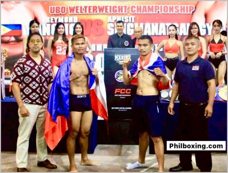 The 30-year-old Aphisit moved to the needle to 66.10 kg, and they are ready to rumble! Also, unbeaten Ivan Ognayon (3-0-1, 3 KOs) will be trading heavy leather against Thai warrior Surawat Wunmud, 26, in a non-title 6-round war in the featherweight division. During the weigh-in at the luxurious Skyview Hotel, the 20-year-old Pinoy scaled in at 58 kilos, while the tough Thai came in slightly higher at 59.20 kg.