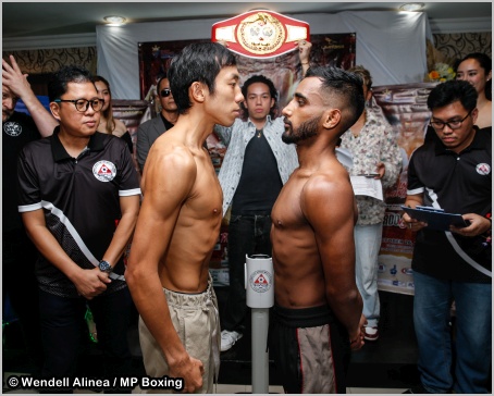 Tso and Sagar face off during Saturday's weighin. In the featured undercard, undefeated Rex Tso (23-0, 14KOs) of Hong Kong takes on India's Sagar Chouhan (7-0-2, 3KOs) in what will be Tso's second fight since returning this year after he ended his eight-year retirement. Tso weighed in at 117.7 lbs while Sagar came in at 118.4lbs. The bout is scheduled for 10 rounds in the bantamweight division. This card is part of the broader “Thrilla in Manila II” celebration card, offering the champion and challenger a huge platform in front of a home crowd. Click here to view a list of other articles written by Dong Secuya. |