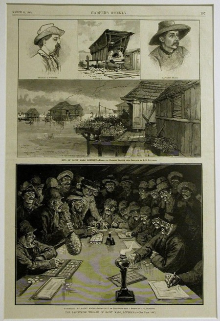 Photo: The lacustrine village of Saint Malo, Louisiana: Bits of Saint Malo scenery (Drawn by Charles Graham from sketches by J.O. Davidson). Saint Malo, first described by Lafcadio Hearn for Harper’s Weekly (March 31, 1883) Long before that, Filipino sailors who plied the Acapulco–Manila galleon trade for Spain decided to stay in New Orleans and built the lacustrine village of St. Malo on the marshes of Lake Borgne in Louisiana — a quiet settlement shaped by wind on the water, shifting reeds, and boats knocking gently against their moorings.