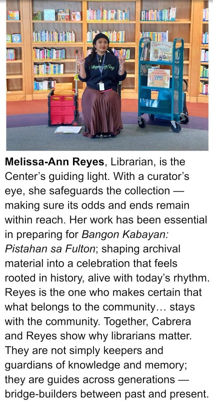 Jaena Rae Cabrera (Photo Courtesy of Andre Canta / Mahalaya. Jaena Rae Cabrera brings a journalist’s curiosity and a librarian’s touch. With degrees from San Francisco State University and Syracuse, she shaped programs that moved history out of the shelves and into the community. She served on national stages too…co-director of the Filipino American International Book Festival; president of APALA. She has a way of making gatherings feel familiar, blending scholarship with celebration.
