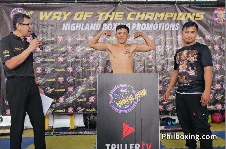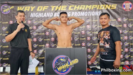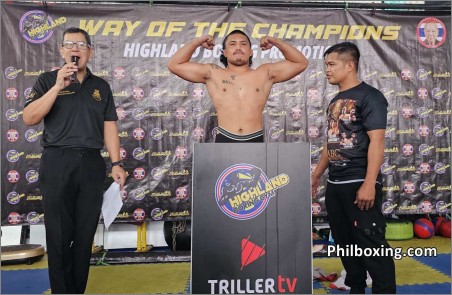 Filipino Boxers Make Weight in Brico Santig's Valentine's Show in Thailand By Carlos Costa PhilBoxing.com Sat, 14 Feb 2026 ![]() Filipinos boxers and coaches pose for a group photo with promoter Brico Santig (L) and supervisor Carlos Costa during Friday's weighin in Bangkok. BANGKOK, Thailand -- Brave Filipino Boxers John Michael Zulueta, Rockie Bactol, Mark Jason "Kingbabyboy" Almacen, and Alvin "Felemon" Dologuin successfully made weight ahead of their respective battles on Valentine's Day at the Highland Boxing Gym in Bangkok, Kingdom of Thailand. The marathon 19-bout pro boxing event is promoted by veteran Filipino man of boxing Brico Santig, with the bell for the first fight chiming hard at 1:00 pm Thailand Time; and no Filipino boxing fan in Bangkok can afford to miss it! In one the much-awaited bouts, undefeated former world-ranked light flyweight John Michael Zulueta (19-0-3, 12 KOs) from the beautiful Lungsod sa Calatrava in Negros Occidental will exchange heavy fire against complicated Kung Srirupramat (7-4, 3 KOs) in a thrilling action-packed war. ![]() Unbeaten Negros Occidental light flyweight John Michael Zulueta looks serious, focused and strong at the scale during Friday's weighin in Bangkok. The serious and focused Zulueta aims to claim his 20th pro win against no defeat as well as a return to the world-rankings in the light flyweight division. The referee for this fight is Carlos Costa of Cebu. ![]() Strong looking Rockie Bactol steps on the scale during Friday's weighin in Bangkok Also, Big Warrior Heart Mindanao Middleweight Rockie Bactol (4-2, 4 KOs) will deal with the charging forward of experienced former Muay Thai combatant Pluem Wangkhlakland. The two 26-year-old boxers will collide in a scheduled 8-round rumble that might not make the distance. ![]() Zamboangueno Alvin Dologuin makes weight in Brico Santigs show in Bangkok. Also, Zamboangueño southpaw Alvin "Felemon" Dologuin (2-4-1, 2 KOs) will cross fire against Phanuwat Sit Kongphong in a six-chapter saga in the flyweight division. ![]() Almacen flexes during Friday's weighin in Bangkok. In addition, 21-year-old Mark Jason "Kingbabyboy" Almacen (1-0-1, 0 KOs) of Muntinlupa City, Metro Manila, engages tough Ne Lin Aung, 26, of Myanmar in a six-chapter war set to thrill fans. "Kingbabyboy's" elder brother, Alexander Almacen (3-0, 0 KOs), will see action here in Bangkok on February 28. The ring physician in charge was Thailand's Chief Medical Officer Dr. Jirasak Bubpachart. Supervisor for the weigh-in was Carlos Costa of Cebu. The 19-bout pro-boxing event is promoted by Brico Santig and Supanat Chanram of Highland Boxing Promotions. Coaches assisting the Filipino boxers during fighting time are coach Jomar Fajardo of Iloilo and coach Frank Jaro of Rizal. Will Zulueta, Rockie, Kingbabyboy and Felemon score wins as his fans hope? Or will they taste defeat? What will happen! Best of luck to the Pinoys Boxers, and Happy Boxing's 2026 Valentine's Day in Thailand, Laban Pinoy!!! The author is veteran boxing reporter Carlos Costa of Cebu carlos@philboxing.com Click here to view a list of other articles written by Carlos Costa. |