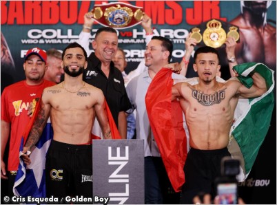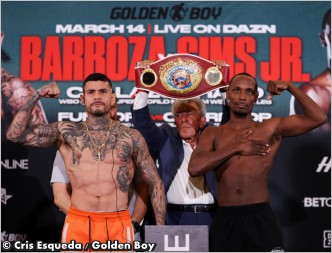 Weights Set in Anaheim: Barboza Jr. and Sims Jr. Ready for Welterweight War; Collazo Defends Titles PhilBoxing.com Sat, 14 Mar 2026 ![]() ANAHEIM, CA – The scales have spoken, and the stage is officially set for a massive night of boxing at the Honda Center. All eyes were on the headliners today as Arnold Barboza Jr. and Kenneth Sims Jr. successfully made weight for their high-stakes WBO Global Welterweight title clash, scheduled for Saturday night, March 14. In a deep card featuring multiple world title bouts, the atmosphere at the weigh-in was electric, signaling a pivotal night for several divisions. The Main Event: Battle for Welterweight Supremacy Long Beach’s own Arnold Barboza Jr. (32-1, 11 KOs) tipped the scales at a lean 146.2 lbs. He looks to defend his home turf and his WBO Global title against the surging Kenneth Sims Jr. (22-3-1, 8 KOs) of Chicago, who weighed in slightly heavier at 146.6 lbs. For Barboza, this is a must-win to stay in the conversation for a major world title shot. For Sims, it represents the biggest opportunity of his career to leapfrog into the division's elite. ![]() Co-Main: Collazo Defends Unified Gold In the co-feature, one of boxing's most technical champions, Oscar Collazo (13-0, 11 KOs), successfully made weight for his defense of the WBO and WBA Super World Minimumweight titles. Collazo weighed in at 104.8 lbs, while his challenger, Jesus Haro (13-3, 2 KOs) of Merced, CA, came in significantly lighter at 103.4 lbs. Undercard Highlights: Fundora’s Unification & Rocha vs. Diaz The card is bolstered by a historic women's flyweight unification. Gabriela Fundora (17-0, 9 KOs) looks to defend her IBF, WBA, WBC, and WBO World Flyweight titles. She weighed in at 110.8 lbs, while challenger Viviana Ruiz scaled 111.8 lbs. Additionally, fan-favorite Alexis Rocha (147.4 lbs) faces off against veteran former champion Joseph "JoJo" Diaz Jr. (147.6 lbs) in a 10-round super welterweight crossroads fight that promises fireworks. Official Weigh-In Results WBO Global Welterweight Arnold Barboza Jr. 146.2 vs. Kenneth Sims Jr.146.6 WBO/WBA Minimumweight Oscar Collazo 104.8 vs. Jesus Haro 103.4 Super Welterweight Alexis Rocha 147.4 vs. Joseph Diaz Jr. 147.6 Unified Flyweight Titles Gabriela Fundora 110.8 vs. Viviana Ruiz 111.8 WBA Continental Gold Joel Iriarte 146.4 vs. Rock Myrthil 146.2 Middleweight Grant Flores 155.0 vs. Rashid Stevens 156.0 Super Welterweight Cayden Griffiths 150.6 vs. Omar Munguia 151.8 Middleweight Fabian Guzman 159.4 vs. Julian Delgado 159.4 Lightweight Daniel Garcia 136.2 vs. Blas Caro 136.8 Lightweight Leonardo Sanchez 130.8 vs. Cesar Juarez 132.0 |